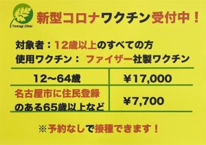 【①インフルエンザ・②新型コロナ(使用するワクチン: ファイザー・武田薬品製)予防接種公費助成のお知らせ】名古屋市内に住民登録がある65歳以上の方等は公費助成が受けられます。〈実施期間〉:①令和7年10月15日〜令和8年1月31日まで ②令和7年10月15日〜令和8年2月28日まで〈自己負担金(窓口での金額)〉:①1,500円 ②7,700円